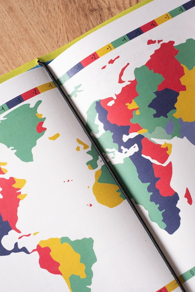 - 1 planisfero colorato nella parte centrale per segnare i luoghi visitati.